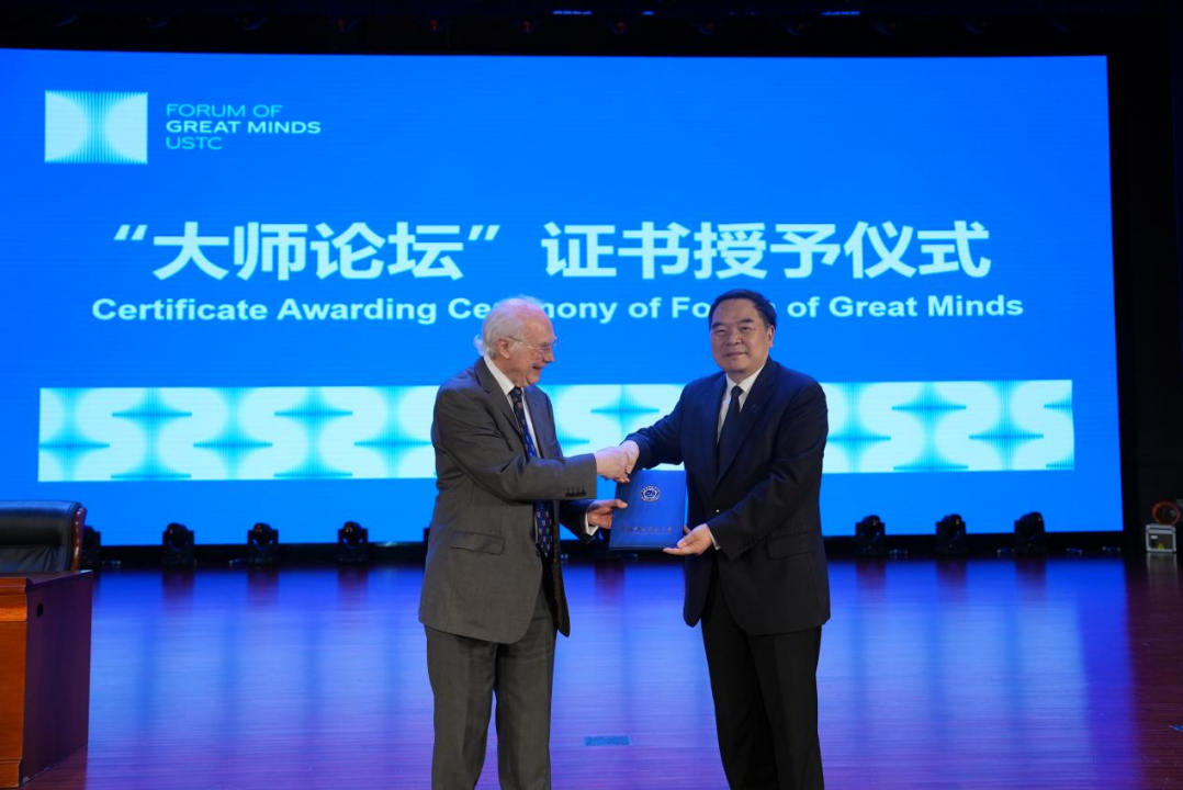 中国科技大学校长包信和简要阐述了中国科技大学的校情和优势学科领域,并向大家介绍了学校自2016年起发起的“大师论坛”品牌项目,该项目特邀全球顶尖学术大师来校交流,与年轻学子展开亲密的面对面互动,为大家提供了更多了解国际前沿科学知识和信息的机会。他表示,很荣幸这次能邀请到诺贝尔生理或医学奖获得者马丁·埃文斯教授,希望每位同学都能抓住这个宝贵的机遇,虚心学习,坚持创新精神,为未来科技的发展继续做出贡献。随后,包信和校长代表学校为马丁·埃文斯教授颁发了中国科大“荣誉教授”证书和“大师论坛”纪念证书。