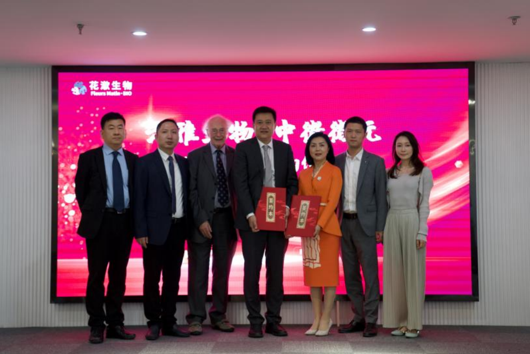 2023年5月11日,花漱生物中微微元战略合作协议签署仪式在花漱生物湖州总部举行。花漱生物董事长吴明远,花漱生物首席科学家、诺贝尔生理或医学奖得主马丁·埃文斯爵士,安徽中微微元生物科技有限公司董事长高倩,董事长助理张占军和花漱生物公司总经理刘洋、海外事务副总经理姚楠等人出席现场。